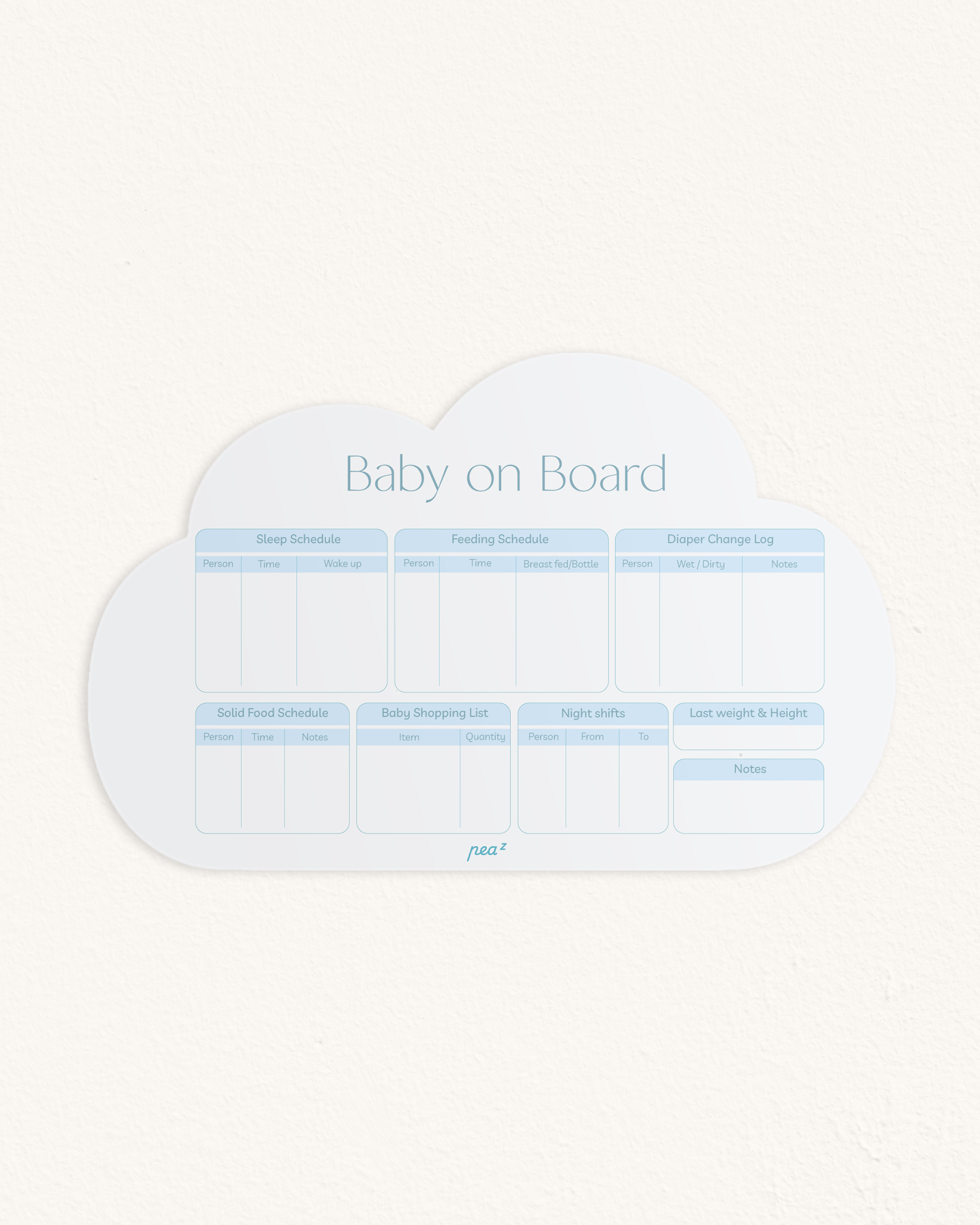 Baby on Board – Cloudy Pastel Blue| Reusable Newborn Routine Wall Tracker